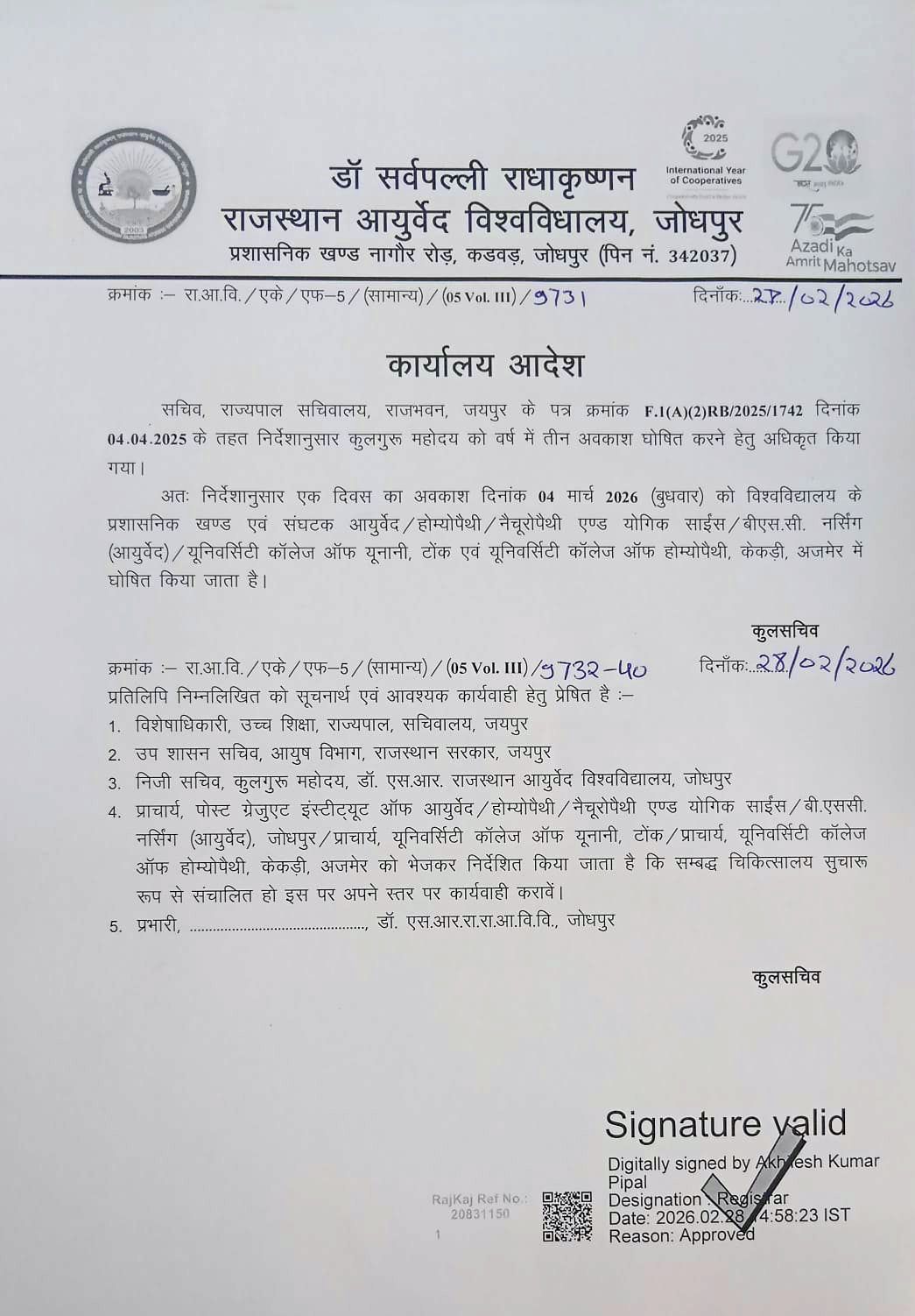 Ph.D Course Work,B.Sc. I,II,III,IV,BNYS-III,IV,V (Old Scheme),BAMS-I(OLD),BHMS-II,III,IV,MD Ayurved-(Dravyaguna) Exams Held in June-July-2025 Re-Evaluation Form available in Applicant Login.